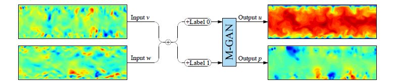 We use M-GAN to predict unavailable parameters (u and p) from available parameters (v and w) of turbulent channel flow. The sample code, data, and tutorial are provided below.